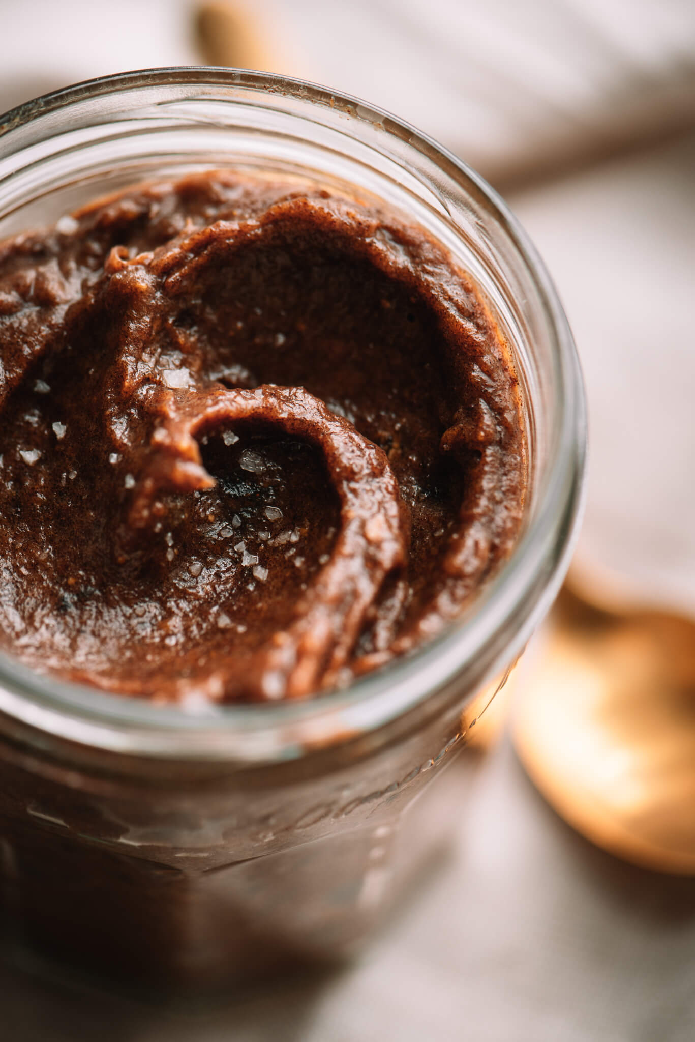 Datules galite naudoti ir Medjol, ir pigias. Jeigu naudosi pigias, jos gana kietos – užpilki verdančiu vandeniu ir palik ~10 min. Prieš gaminant nupilam. Jeigu medjol, pakaks gerai praplaut po tekančiu vandeniu. Nukaulinam, visus ingredientus dedam į trintuvą ir sutrinam iki vientisos masės. Dedam į švarų stiklainį ir laikome šaldytuve.