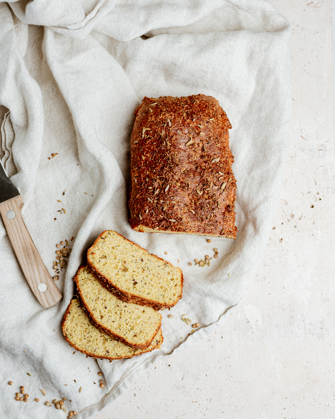 Taigi, grįžtant prie recepto. Man labai patiko paprastumas gaminant ir duonos drėgnumas. Nuo kokosinės mano keto duonos skiriasi korėtumu ir lengvumu. Nesuteikia tokio sotumo jausmo kaip kitos keto duonos. Tekstūriškai labai panaši į mano kalafiorų duoną, tik sakyčiau gamybos procesas paprastesnis.