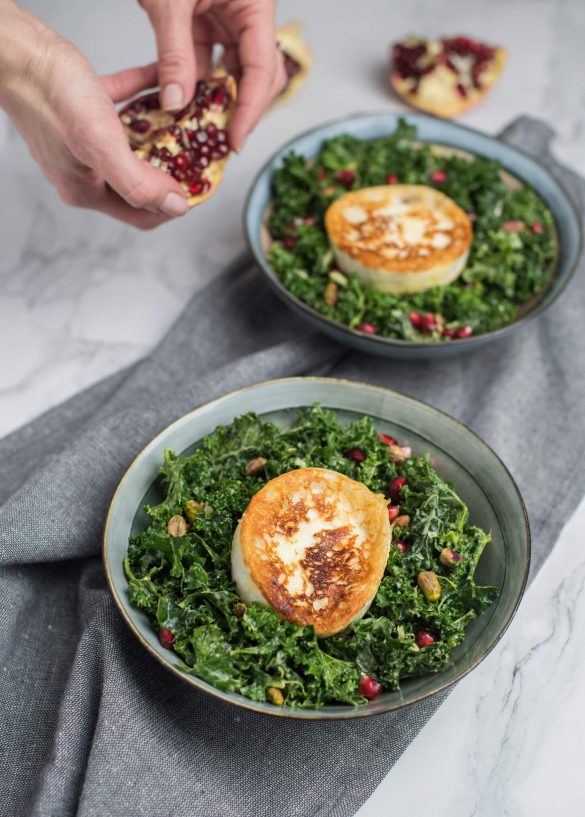 Kale ir ožkos sūrio salotos su Tahini padažu