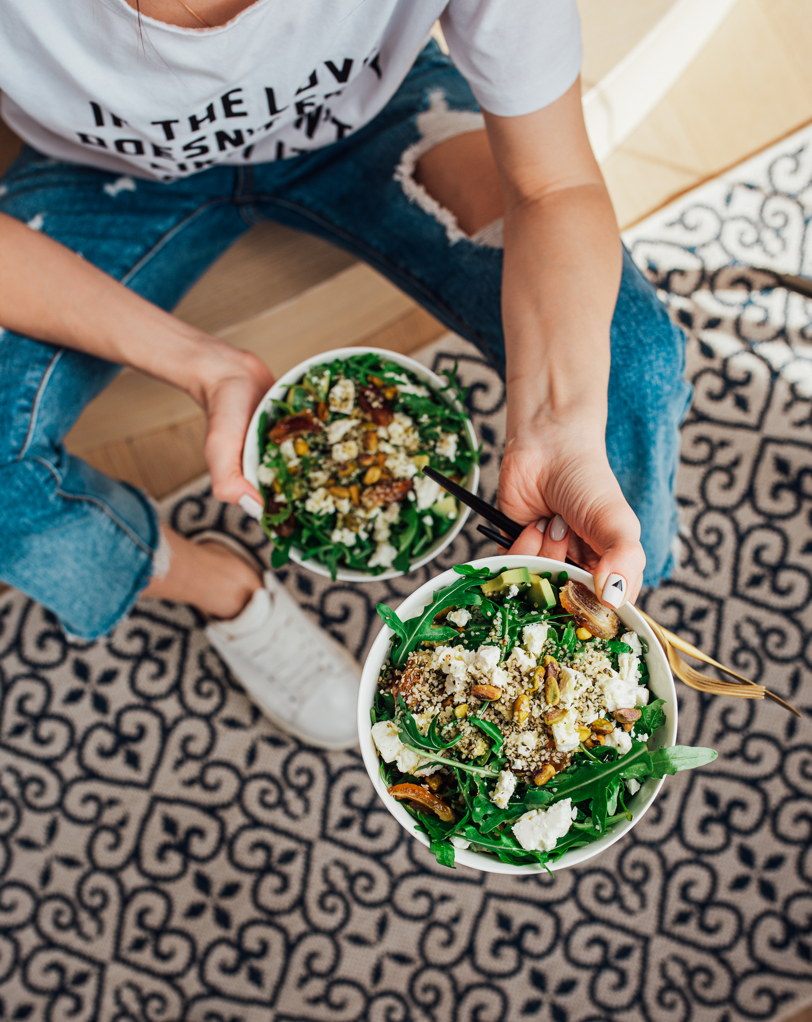 Aš visada pasisakau už pozityvą. Ką gi tas stresavimas gero duos, ane? Tad dalinuosi savo receptų skrynelėje per ilgai užsibuvusiomis salotomis! Jas iki atostogų gaminausi Lietuvoje non stop. Kiekvieną dieną. Tris savaites. Kasdien.